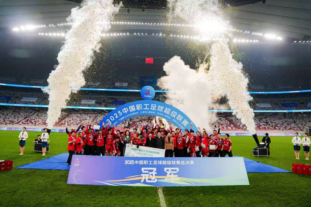 工人日报客户端11月1日电(记者莫荞菲)10月31日,2025中国职工足球超级联赛(后简称“职超”)总决赛在西安国际足球中心迎来巅峰对决。浦发银行职工足球队在常规时间最后一分钟绝平对手东风本田职工足球队,将比赛拖入点球大战。随后在点球大战中,浦发银行职工足球队3比2战胜对手,最终以总比分4比3,成功捧起首届职超冠军奖杯。